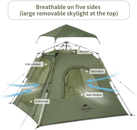 Naturehike Ango Camping Tent,3 Person 4 Person Instant Cabin Tent,Easy Setup Pop up Tents for Camping,3-4 People Family Camp Tent