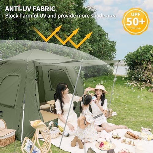 EASY SETUP INSTANT TENT: with pre-attached poles and automatic frame design, the tent is super easy to assemble within 60S even anyone with no experience.And it is also easy to pack down to the carry bag, super convenient for family camping.