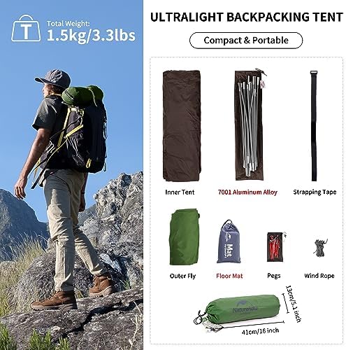 Naturehike Cloud-Up 1 Person Tent Lightweight Backpacking Tent for One Man, Waterproof Ultralight Single Person Tent, Double Layer One Person Tent for Camping Hiking Backpacking
