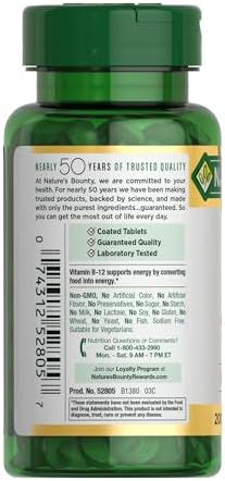 FROM THE TRUSTED WELLNESS EXPERTS: Nature’s Bounty Vitamin B-12 tablets are a product of nearly 50 years of dedication to quality, consistency, and scientific research to make vitamins and nutritional supplements of unrivaled excellence
