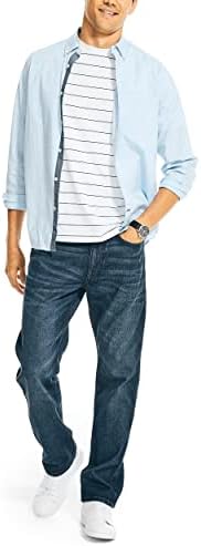 A welcome departure from your standard everyday basic, these straight-leg jeans have all the design appointments you want-five-pocket styling, classic fit, button-and-zip closure-but in a cooler, more modern grey wash. They dress up or down, no sweat. From Nautica.
