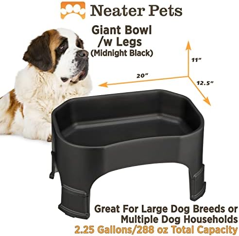 Neater Pet Brands Giant Bowl with Leg Extensions Huge Jumbo Trough Style Dog Pet Water Dish (2.25 Gallons, Midnight Black)