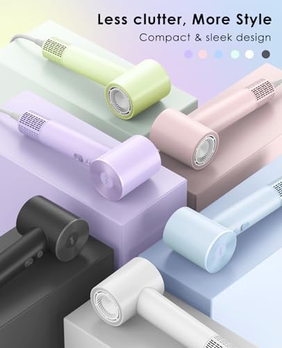 Sleek and Lightweight Design: Our hair dryer weighs only 0.82 lb, making it easy to handle and carry. while the 5.9FT(1.8M) power cord provides ample length for convenient use both at home and in professional salon settings. Plus, the reduced noise level of only 59db ensures a more pleasant drying experience. TIPS: Nozzle is NOT magnetic.