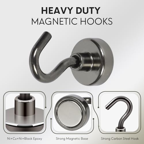Neosmuk Magnetic Hooks, 27 lb+ Heavy Duty Earth Magnets with Hook for Refrigerator, Extra Strong Cruise Hook for Hanging, Magnetic Hanger for Cabins, Grill (Gunblack, Pack of 10)