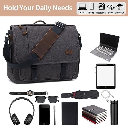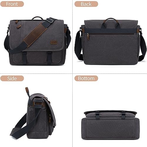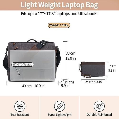 Nerlion Messenger Bag for Men 17-17.3 Inch Laptop Bag Canvas Water-resistant Computer Bag Shoulder Bag Work Briefcase Bookbag for College (Gray)