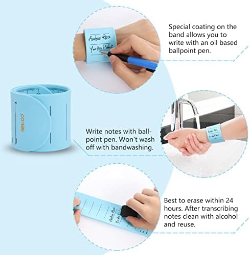 CAN BE WRITTEN AND ERASED: The front of the wristband can record the contents, and the back is a measuring ruler ( 8in/20cm). You can write directly with an oil-based ballpoint pen and erase it by rubbing it with an eraser. (It is recommended to use ZEBRA 0.7mm core for the ballpoint pen.) It is best to erase within 24 hours. Also you can clean it with alcohol or alcohol wipes and reuse it.