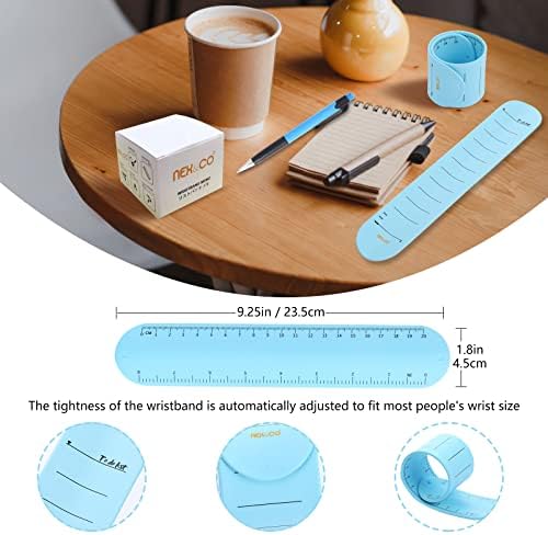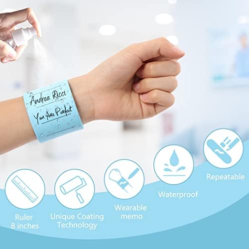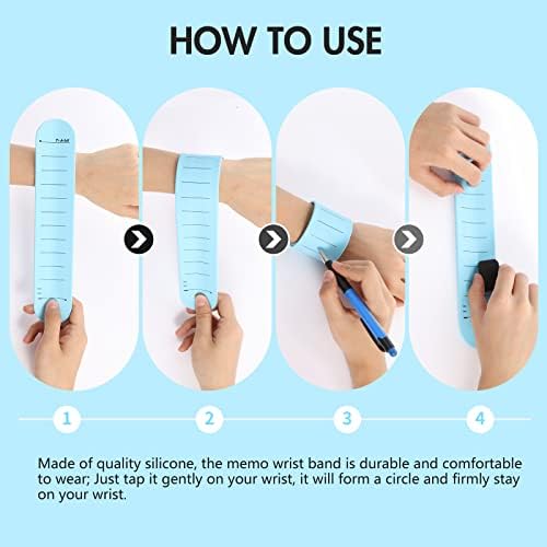 WIDE APPLICATION: Wearable memo products are 1.78in wide, 9.45in long and 0.08in thick. It snaps around your wrist and you can easily take notes. With a special design, you can put notes on your wrist to remind you of important lists, tasks, chores and more. It can also be used as a measuring instrument, ruler, medicine memo for the elderly, and work essentials.