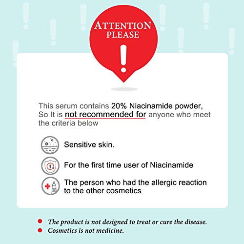 The product contains a high content of Niacinamide. We have experienced “Allergic reaction” and “face burning” in users with sensitive skin. Please test under the chin before use.
