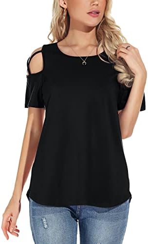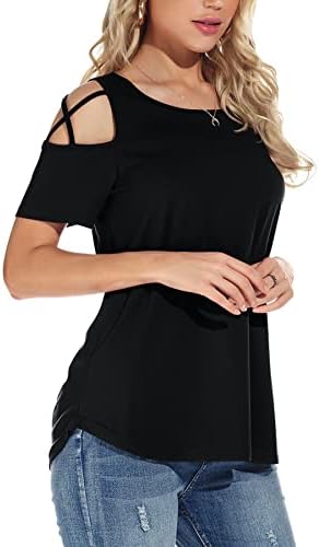 NILOUFO Womens Summer T Shirts Short Sleeve Tunic Strappy Cold Shoulder TopsNILOUFO Womens Summer T Shirts Short Sleeve Tunic Strappy Cold Shoulder Tops