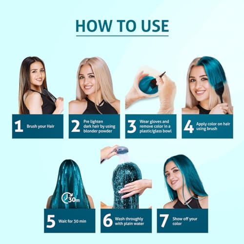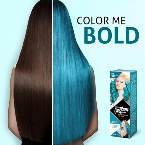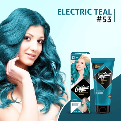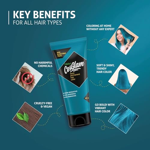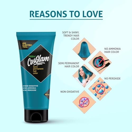 Nisha Cosglam Vegan And Cruelty Free Semi Permanent Hair Color, Blue Hair Dye With Infused Conditioner | No Ammonia, No Peroxide, Non Oxidative Hair Colour – 120g / 4.06 Fl Oz (#53 Electric Teal)