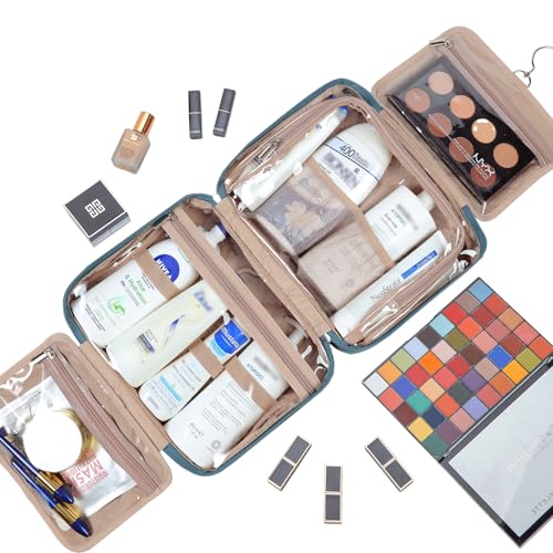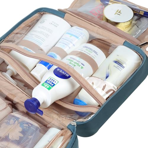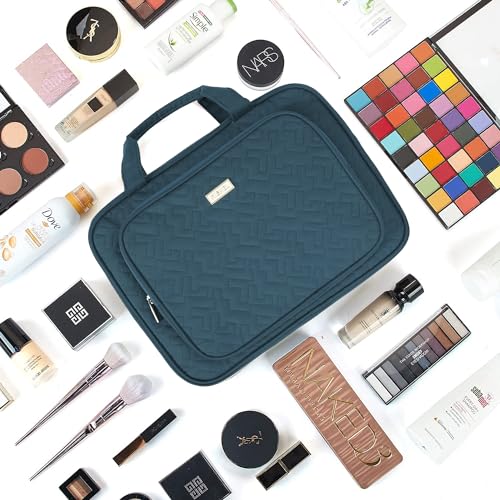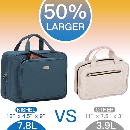 NISHEL Travel Toiletry Bag for Women Large Capacity, Travel Essentials Organizer, Hanging Makeup Case for Accessories, Cosmetics, Toiletries, Lake-Blue