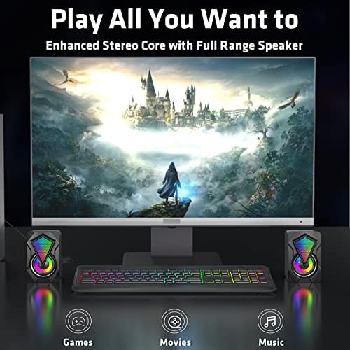 【Multi Compatible】The wired speakers are USB-powered (5V) and 3.5mm audio interface,can work with PC ,Desktop, Mobile Phone, Laptop, Xbox One, Ps4, iMac, Macbook or any devices that has a standard 3.5mm headphone jack.Compatible with various systems, such as windows, Mac OS, Chrome OS, Linux, UNIX.