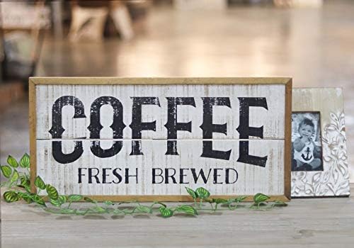 No/Brand Farmhouse Rustic Wood Framed Coffee Sign, Decorative Coffee Wall Decor for Kitchen, Restaurant, Shop, Coffee Bar – 23″ W x 1″ D x 11″ H