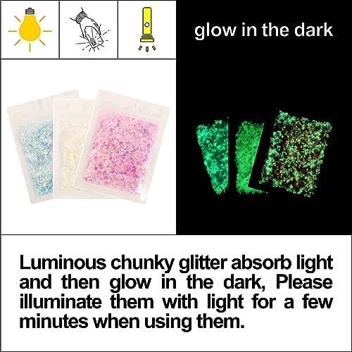 Noctilucent Face Gems, 12Pcs Luminous Face Jewels Rhinestones Stickers and 15g Chunky Glitter Glow In The Dark for Face Eye Glow Make up Festival Dress-up Face Jewelry Rave Accessories Party Supplies