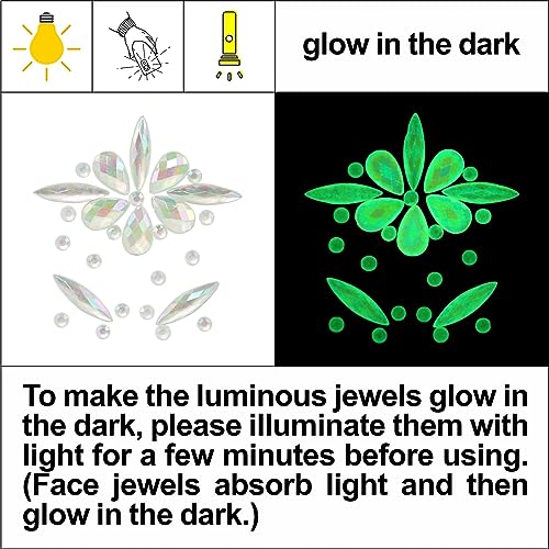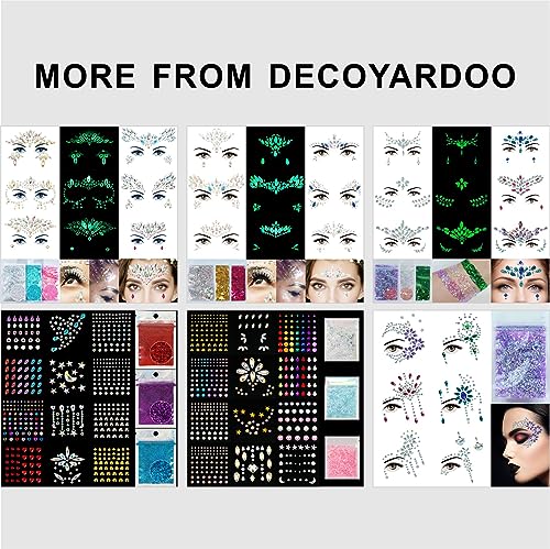💎【Get Your Glow On】12 glow-in-the-dark face jewel stickers are crafted from eco-friendly and skin-safe rhinestones and resin, ensuring they won’t cause any allergic reactions. DECOYARDOO temporary tattoos body gems come individually packaged, with some featuring pre-designed patterns, while others allow for your own creative DIY face makeup designs. Whether for personal use or as a gift, they are the perfect choice.