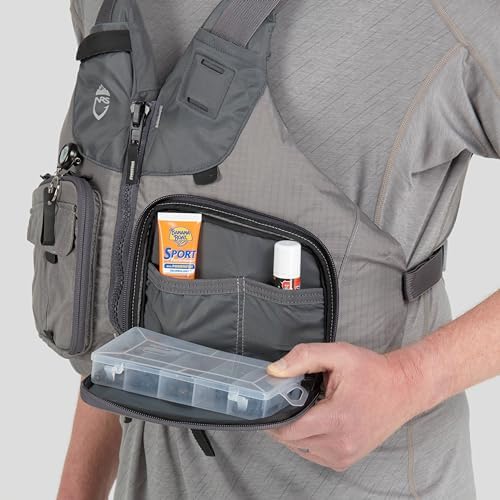 Zippered front entry for quick donning and six adjustment points for a customized fit. Two large clamshell pockets, sized for tackle boxes, feature updated internal organization based on angler reviews.