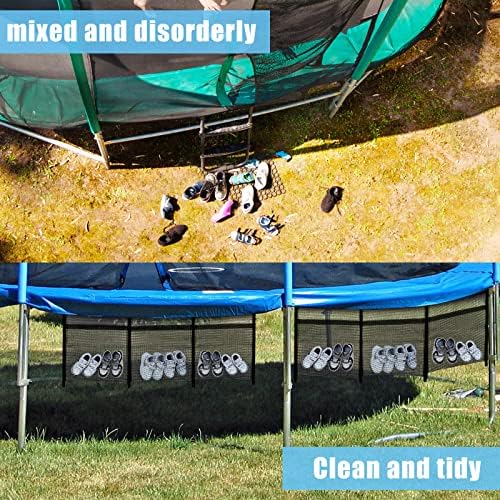 Easy to Install: it is easy to install the trampoline shoes organizer, just tie the straps on the legs of the trampoline, and you can also fix the shoe bag with a long elastic band easily; The entire installation process can be completed in 10 minutes or less