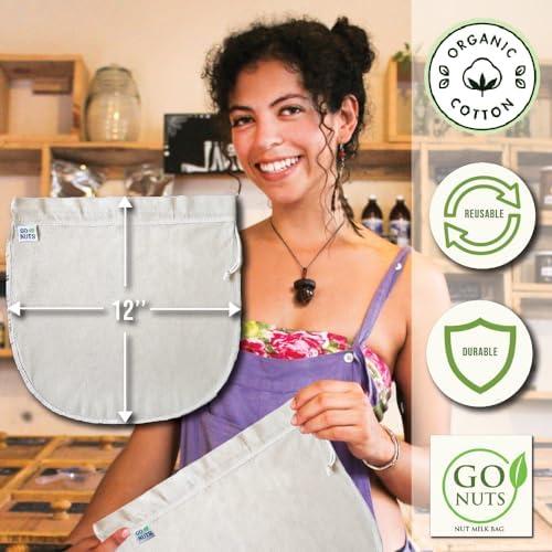 Nut Milk Bag by Go Nuts – 2 Pack | 100% Organic Cotton Cheesecloth | Reusable Strainer for Coffee, Tea, Yogurt, Oat Milk, Celery Juice | 12”x12’’