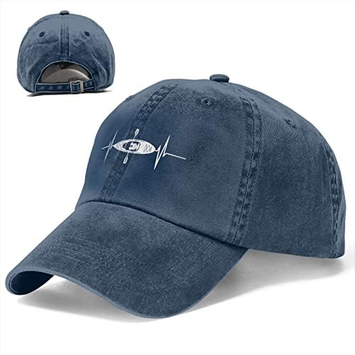 NVJUI JUFOPL Men’s Kayaking Hat, Adjustable Washed Denim Baseball Cap for Kayak, Kayak Heartbeat Sun Caps
