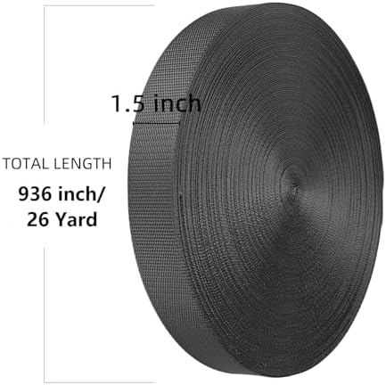 Nylon Webbing 1.5 Inch, Heavy Duty Nylon Webbing Strap 12 Yard,Durable Nylon Strapping for Indoor or Outdoor Gear, DIY Crafting, Repairing (Black, 1.5″-26 Yard)