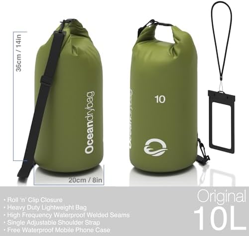 Oceandrybag – Waterproof Dry Bag backpack – Floating Dry Sack Portable for Kayaking, Beach, Rafting, Boating, Hiking, Camping, Fishing with Waterproof Phone Case – Keep Your Gear Clean & Dry