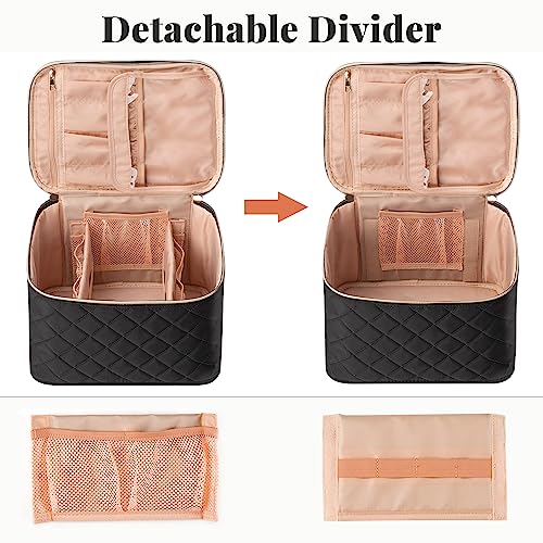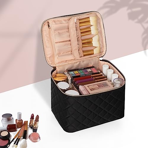 OCHEAL Makeup Bag,Large Travel Makeup Bag Organizer Cosmetic Bags for Women Washable Make Up Bag Makeup Organizer Case with Dividers – Large,Embossed Rhombus Black