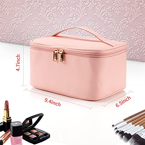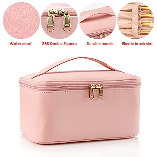 OCHEAL Pink Makeup Bag,Travel Makeup Organizer Bag, Large Capacity Cosmetic Bags For Women Large Travel Toiletry Bag Girls Traveling With Brush Slot And Divider