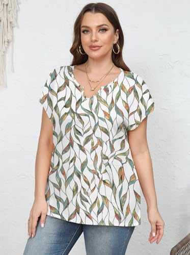 OFEEFAN Womens V Neck Short Sleeve Shirts Trendy 2024