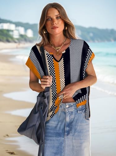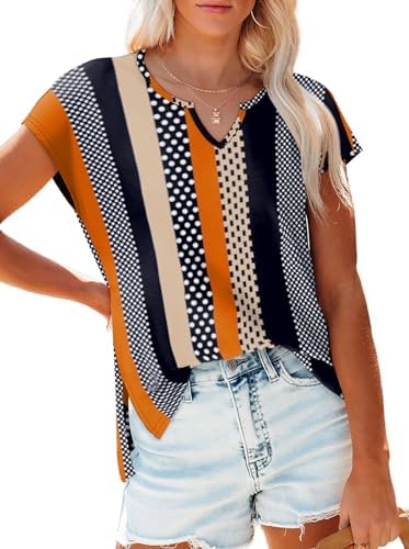 OFEEFAN Womens V Neck Short Sleeve Shirts Trendy 2024