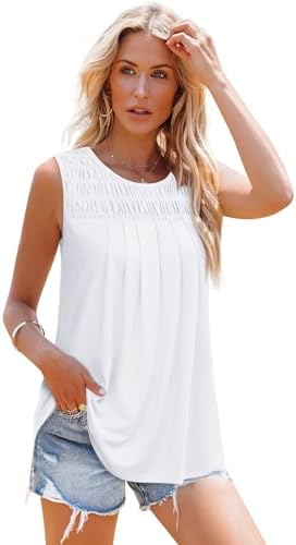 OFEEFAN Womens Tank Tops Summer Pleated Crew Neck Sleeveless Tops for Women Ruched Loose