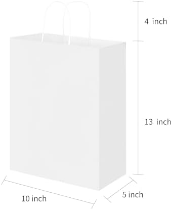 Oikss 50 Pack 10x5x13 White Kraft Paper Bags with Handles Bulk for Birthday Party Favors Grocery Retail Shopping Business Goody Recycled Craft Gift Bags (Large Size, 50 Count)