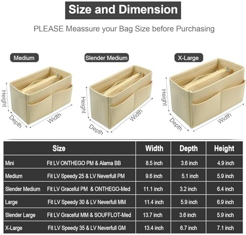 OMYSTYLE Purse Organizer Insert for Handbags, Felt Bag Organizer for Tote & Purse, Tote Bag Organizer Insert with 5 Sizes, Compatible with Neverful Speedy and More