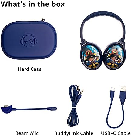 ONANOFF BuddyPhones Cosmos+ Active Noise Cancelling Bluetooth Kids Headphones, Over-Ear Volume Limiting with Built in Mic, 24 Hours Battery Life, Deep Blue