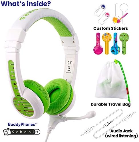 ONANOFF BuddyPhones School+ Safe Audio School Headphones for Kids, High-Performance BeamMic, Detachable BuddyCable, Anti-Allergic Earpad with Carry Bag, Green