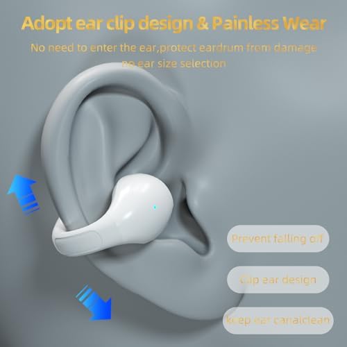 Open Ear Headphones True Wireless Bluetooth Headphones, Ear Clip Earbuds, Sweat Resistant, Fast Charging, 24HRS Playtime, Open Ear Earbuds for Workout, Driving, Meeting (White)