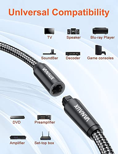 PERFECT COMPATIBILITY:VANAUX Extension Optical Male to Female Cable Compatible for Home Theater, Sound Bar, HDTV, PS4, Xbox, Playstation,and devices with standard TOSLINK/OPTICAL ports.