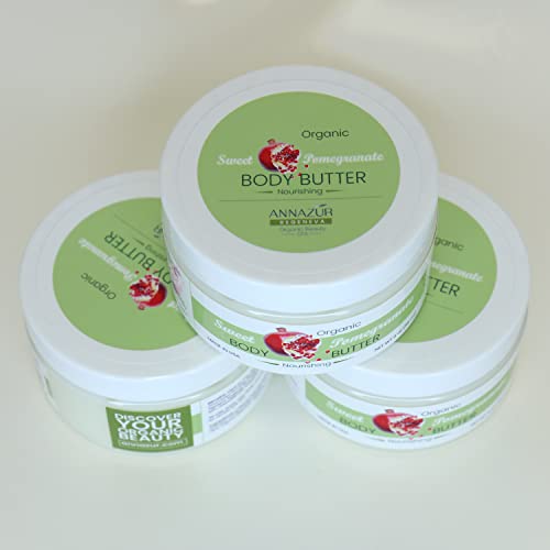 Organic Body Butter Sweet Pomegranate For Women, 100% Pure, Body Lotion, Dry Skin Moisturizer For All Skin Types, ANNAZUR (Pomegranate, 4)