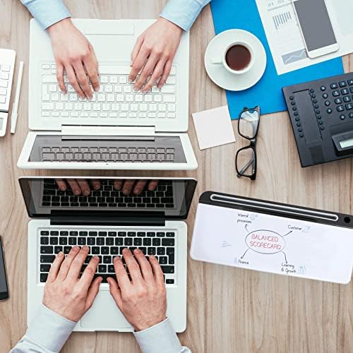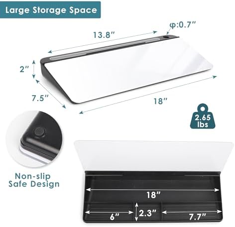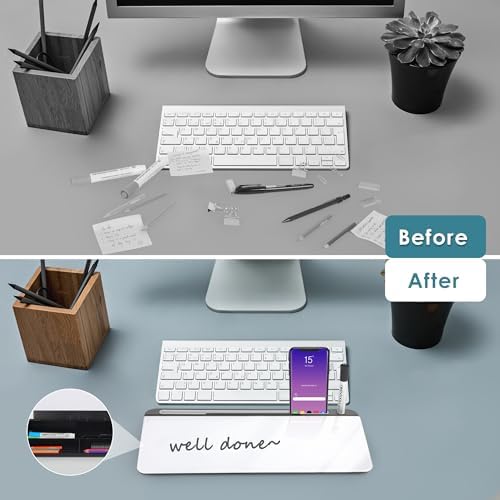 ORIENTOOLS Desktop Whiteboard with Glass Surface, 18” x 7.5” Desk Whiteboard, Desk Dry Erase Board with Storage, Computer Pad & Keyboard Stand, Desk Accessories for Office, Home, School
