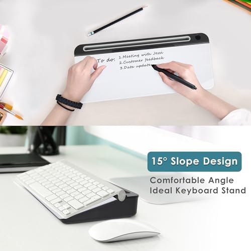 【Ergonomic Design】: By elevating your desktop 15°tilt, it is very suitable for students and office workers, reducing the pressure of neck while long-term desk working or study. It is also easy and comfortable to type on our desk whiteboard as a computer pad & keyboard stand.