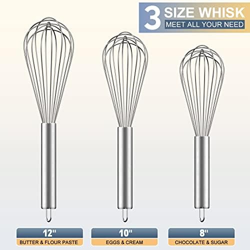 Ouddy Stainless Steel Whisk Set 8″+10″+12″, Kitchen Whisk Balloon Whisks for Cooking Egg Beater Wire Wisk Wisking Tool for Blending Whisking Beating Stirring Baking