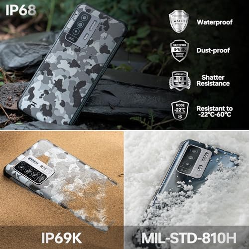【8500mAh Larger Battery】Rugged phones unlocked is equipped with a 8500mAh battery and turns out to be a strong powerhouse that continuously powers you up, living up to more than a day of regular use. It can provide 890hrs Standby,72 hrs Normal Use, 65 hrs Call, 40hrs Music, and 13 hrs Video(Lab data). Intelligent and thoughtful AI battery management can reduce excessive cache to save more power and longer standby time.