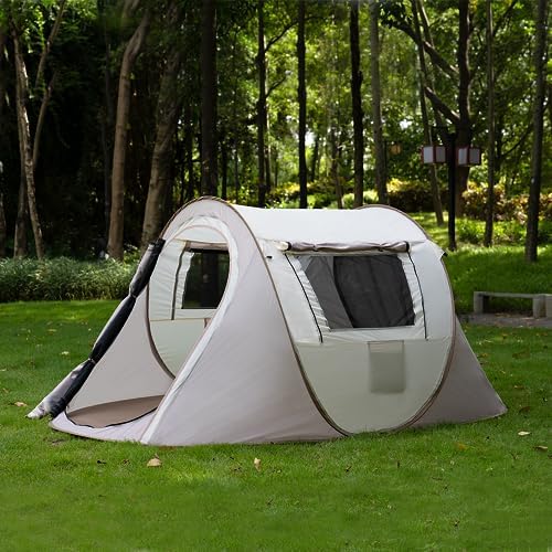 Outstanding Breathability: The tent has 2 layers of mesh screen and fabric doors, 2 front and back, and 2 windows on the left and right