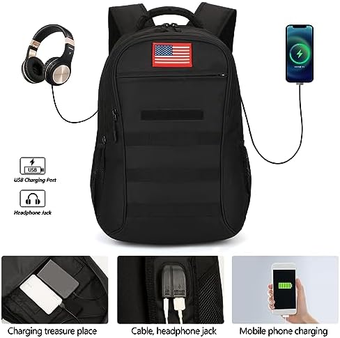 CHARGE PHONE EASILY:USB port and earphone port on the surface of the shoulder strap,the camo backpack for men offers you a more convenient way to charge your phone while walking.Please noted that this tactical backpack doesn’t power itself, usb charging port only offers an easy access to charge