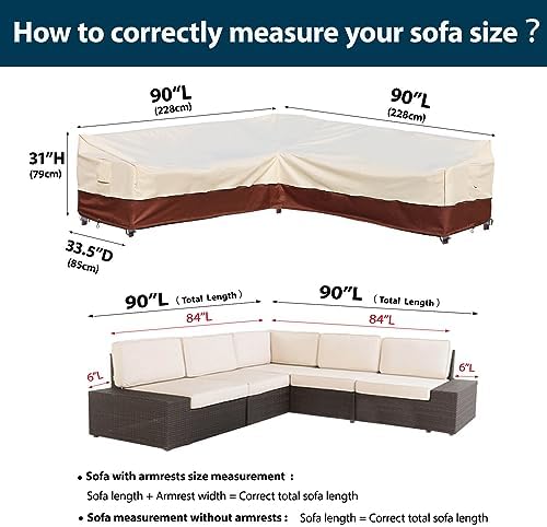 Universal Outdoor Furniture Covers Size : Every great sofa deserves the excellent sofa cover. Fits most patio V -shaped sofas 90”L 33.5”D 31”H, Please measure your sofa size before purchase to find the best waterproof outdoor furniture cover for you (Note: it is recommended to choose the cover 1-2 inch larger than your sofa)