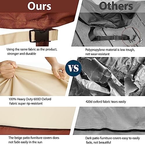 Waterproof Protection for Your Patio Sofa : This outdoor sectional cover is made of heavy duty 600D Oxford fabric, which provides waterproof protection more effectively than others 300D and 420D material, and has an UV-stabilized coating laminated backing support water-resistant fade Resistance, and rip-resistant. We use high-density double seam stitching in the middle of the patio furniture sofa cover where water is likely to seep through, making it difficult for water to penetrate.