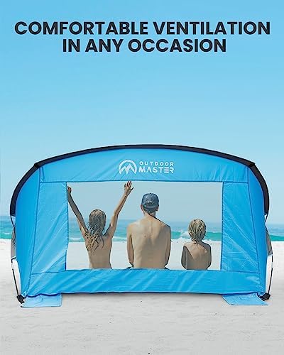 OutdoorMaster Beach Tent for 3-4 Person – Easy Setup and Portable Beach Shade Sun Shelter Canopy with UPF 50+ UV Protection Removable Skylight Family Size-Blue