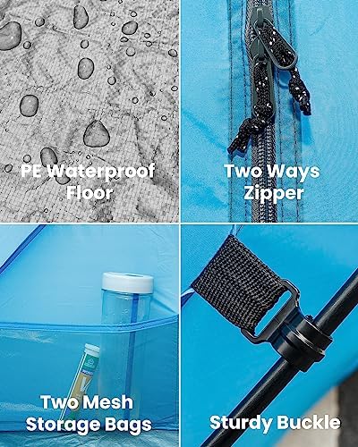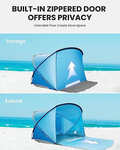 VERSATILE DESIGN: Our tent for beach built-in ZIPPERED DOOR offers privacy to change into dry clothes. The EXTENDED FRONT FLOOR provides extra room for more activities. The sun shade with ample mesh panels allow views and enhances cross-ventilation to help manage condensation.