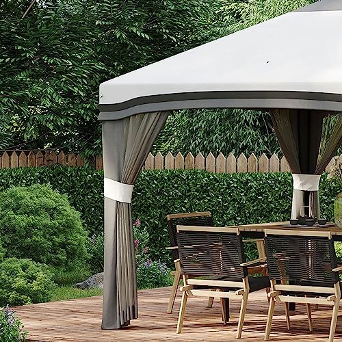 Outsunny 10′ x 10′ Pop Up Canopy Tent with Netting, Instant Tents for Parties, Height Adjustable, with Wheeled Carry Bag and 4 Sand Bags for Outdoor, Garden, Patio, Gray