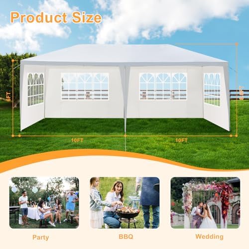 Outvita Outdoor Party Tent, Patio Canopy Tent Gazebo with Removable Sidewalls Instant Event Tent for Cater Events Wedding Birthday Pavilion Beach BBQ (10’x20′)