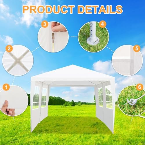 【WIDE USAGE】This party tent is perfect for commercial or recreational use like party, wedding, graduation, flea market, small business, outdoor events, patio leisure, backyard, camping, picnics, sporting events, arts and crafts tables and much more.